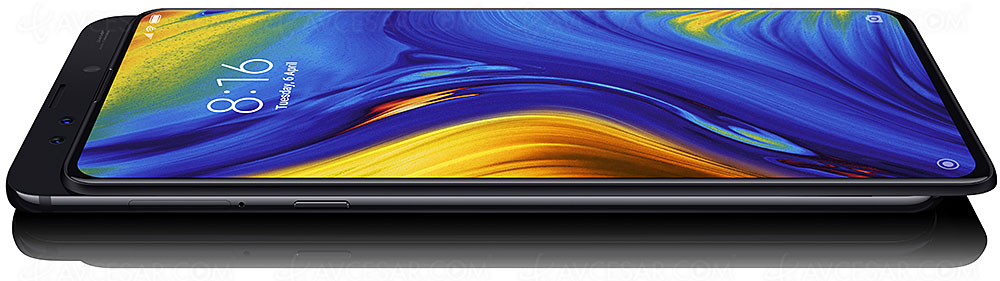 En fait, plutôt qu'un smartphone, le Xiaomi Mi Mix 3 est à ranger dans la catégorie des phablettes avec son écran 6,39'' (16,23 cm). La particularité de celui‑ci est d'être un modèle « slider », comprenez par là que l'écran coulisse vers le bas via un mécanisme de glissière magnétique à aimants néodyme pour dévoiler l'appareil photo frontal et le flash (cf. photos ci‑dessous). À savoir, Xiaomi assure que la durabilité de son mécanisme « slider » affiche 300 000 utilisations minimum.