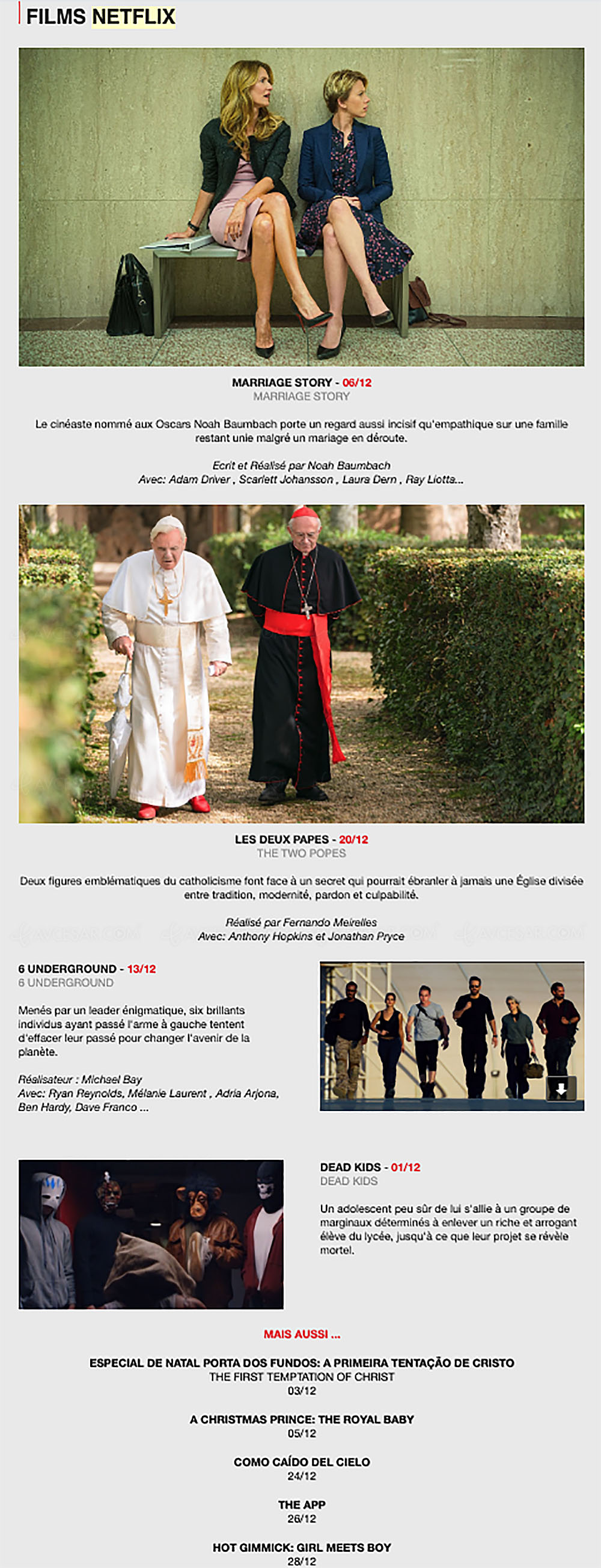 Des programmes supplémentaires arrivent tous les mois sur la plateforme de streaming Netflix, notamment des productions originales et exclusives. Voici donc (avec un peu de retard) la totalité des séries, films, programmes pour enfants et documentaires originaux qui vous attendent pour ce mois de décembre.