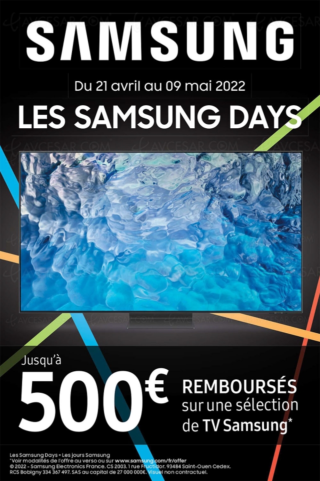 L'offre de remboursement sur la toute nouvelle gamme TV Samsung Neo QLED et QLED 2022 permet d'économiser jusqu'à 500 € selon le modèle.