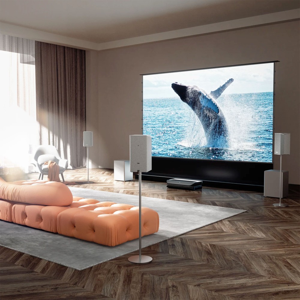 Enfin, petit détail qui a son importance pour l'intégration, les projecteurs Aetherion Pro et Aetherion Max disposent d'un mode Enceinte centrale permettant de les raccorder au nouveau système audio Awol ThunderBeat (pack enceintes 4.1.2) pour que les voix semblent sortir directement de la toile de projection.