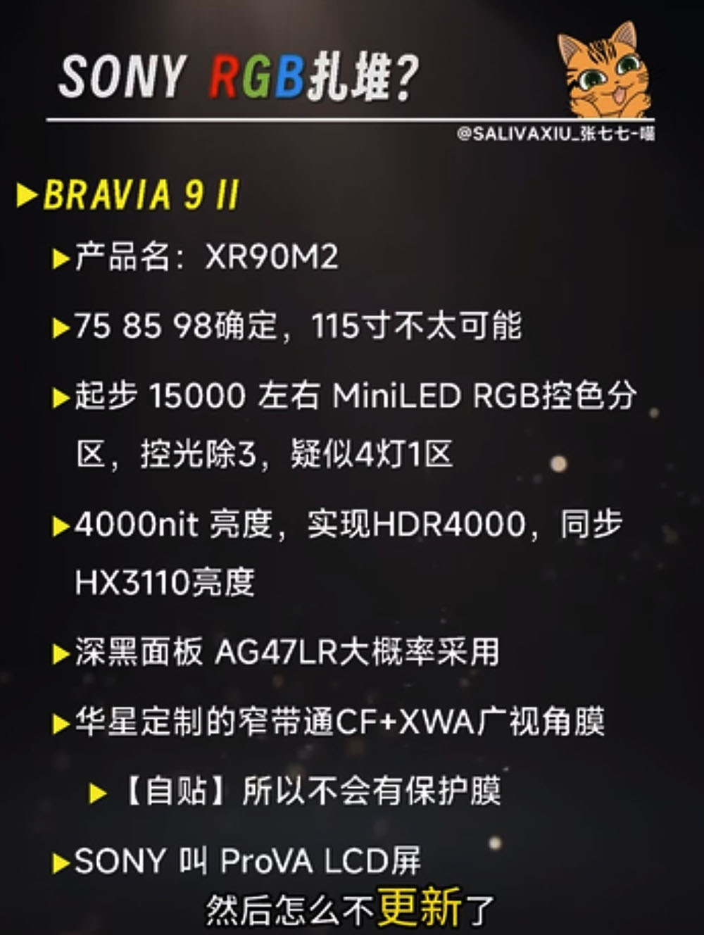 TV Mini LED RGB Sony Bravia 9 II, spécifications subodorées