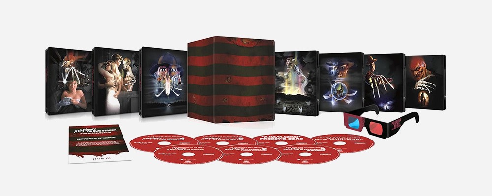 À noter, outre les films 4K et Blu‑Ray, le coffret contient aussi un certificat d'authenticité limité et numéroté à 15 000 exemplaires, et une paire de lunettes 3D anaglyphe pour le segment en relief de La fin de Freddy : l'ultime cauchemar.