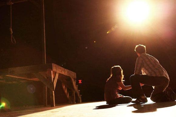 Une mouture de slasher donc, flanquée d’une mise en scène de la vengeance maladroite et peu maîtrisée. Le tandem trouvant probablement judicieux d’élire la potence de la pièce comme le clou d’un spectacle désespérément statique. Sommes‑nous, compte tenu du recours initial à la caméra embarquée, encore dans le feu de l’action ou bien dans une sorte de théâtre filmé ? Quel que soit son parti pris, Gallows s’avère cafouilleux et peu inspiré.