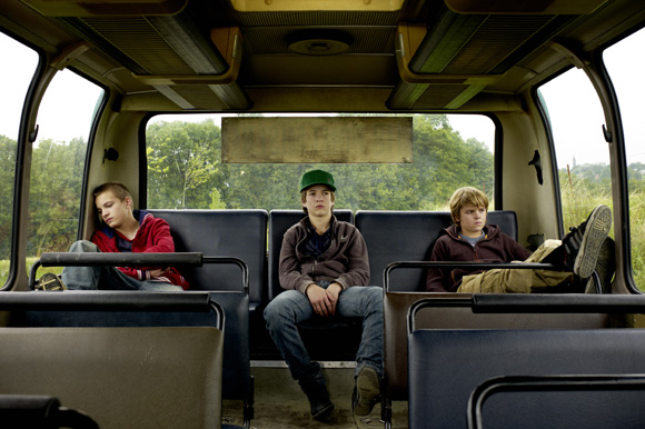 Filmant en Scope, Lanners cadre avec soin l’enfance perdue de ses trois héros (parfaits jeunes acteurs à la fois pleins d’espièglerie et de mélancolie latente), bousculée par une adolescence que l’on devine trop courte, trop abrupte, et qui va les précipiter trop vite vers l’âge adulte. Il les perd donc comme trois petits Poucet dans une nature faite de champs de maïs, de forêts majestueuses et de petits lacs. Autant de havres de paix bien moins menaçants que ne l’est le monde des grandes personnes : soit des parents absents, soit d’odieux personnages (dont un trafiquant de drogue avec lequel ils vont devoir traiter contre un peu d’argent de poche).