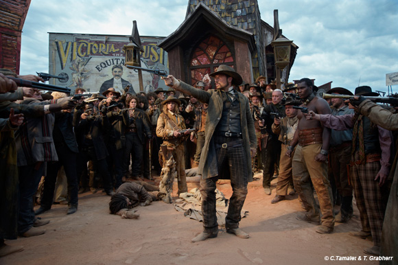 Tourné dans les paysages arides de l’Argentine, flanqué d’un confortable budget de 27 millions d’euros, le Lucky Luke de James Huth se déroule à Daisy Town, la ville natale de Luke, et voit s’affronter l’homme à la brindille verte et la grande famille des bad guys : Bill the Kid (Michael Youn) qui, pour son interprétation, avoue s’être inspiré de Tuco, le Mexicain roublard du Bon, la brute et le truand, Sylvie Testud incarne Calamity Jane, Melvil Poupaud prête ses traits à Jesse James et l’impitoyable Pat Poker est joué par Daniel Prévost himself. Mais ni le chien Rantanplan ni les Dalton ne viennent rayer de leurs tenues de bagnards le ciel de l’Ouest.