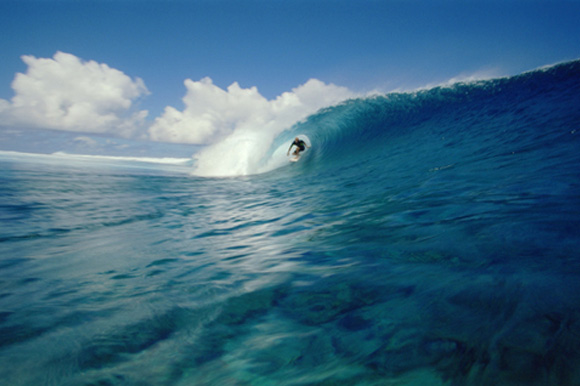 Après vingt bonnes minutes d'attente et de palabres sur l'origine des îles polynésiennes, les courants marins, la barrière de corail, la faune aquatique, etc., voici enfin la première vraie vague. Il était temps !