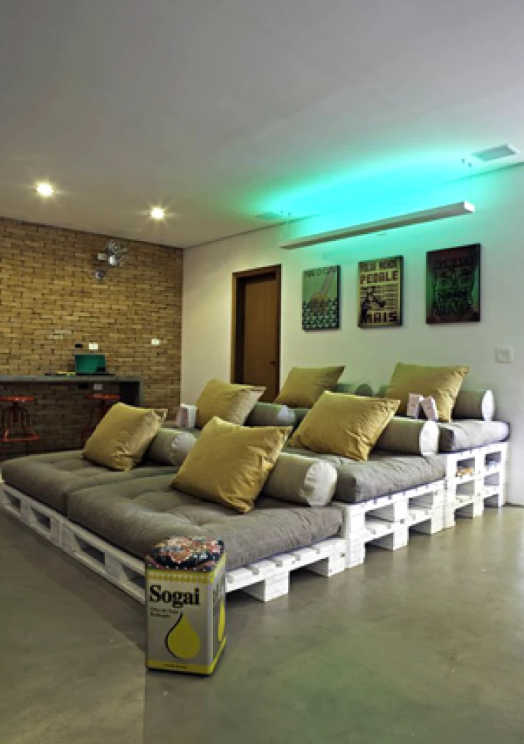 C'est en fait une agence de marketing brésilienne, spécialisée dans le sport, qui a fait appel à l'architecte Simone Tasca pour réaménager cette pièce vide et lugubre en espace détente/TV. Allez, vous avez tout le week‑end pour nous envoyer les photos de vos réalisations ! (Photo © Alexandra Dotta).