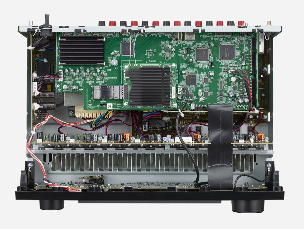 • Entrées : 3 entrées HDMI 2.1, 3 entrées HDMI 2.0b, 2 optiques, 1 coaxiale, 4 stéréo RCA, 1 entrée Phono, 1 port USB alimenté, 1 port Ethernet