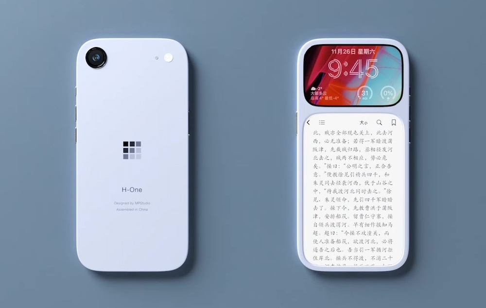 Après avoir présenté un concept d’appareil bi‑écran, smartphone sur une face, liseuse sur l’autre, le designer Mechanical Pixel revient avec un modèle orienté détox numérique progressive, mettant en avant sur la même face un écran e‑ink, surplombé d’un écran classique, mais plus petit.