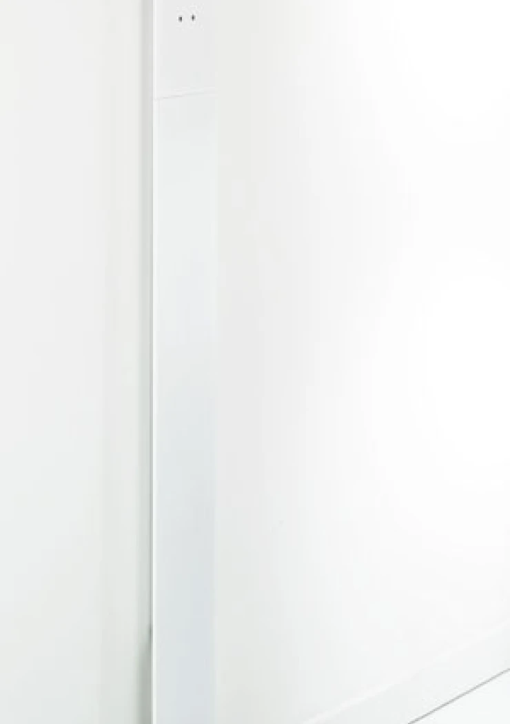 Le Standit Erard se présente sous la forme d'une colonne acier dotée d'un double appui, au sol et sur le mur. En bas, la colonne repose sur une large base évasée et design, équipée de patins antidérapants pour une parfaite assise. Au mur, la partie haute de la colonne est calée grâce à un stabilisateur élastomère adhésif, permettant d'amortir son poids et celui du TV, tout en assurant la stabilité de l'ensemble. Enfin, le téléviseur est accroché grâce à un îlot en acier monté sur la colonne.