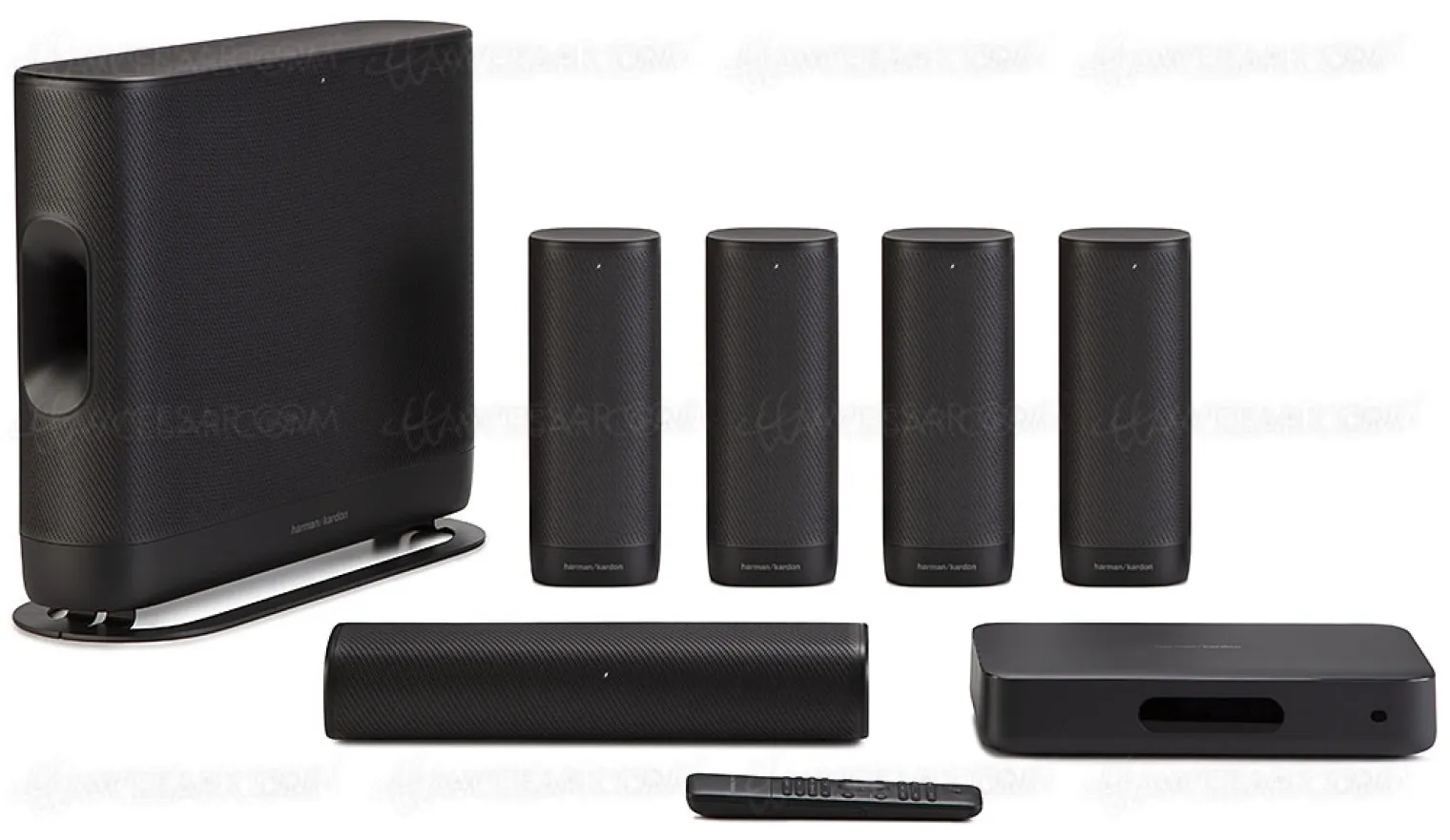 Outre une connexion filaire, le HK Surround est certifié Bluetooth pour diffuser le contenu musical d'un smartphone, d'une tablette, d'un ordinateur… compatible(s). De même, la fonction Chromecast permet de profiter de moult services en ligne sur le grand écran du salon et/ou les enceintes (YouTube…). À savoir encore, HK Surround est fourni avec cinq supports muraux pour les enceintes frontales, surround et centrale. Enfin, la puissance totale délivrée, à travers un amplificateur Class D, affiche 380 watts.