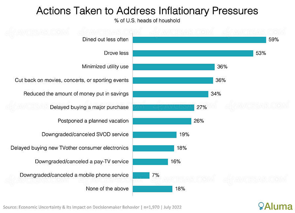 Selon les derniers chiffres du cabinet Aluma Insights, sur les six derniers mois, 26% des foyers américains ont annulé un abonnement, ou choisi une offre moins onéreuse, à un service de streaming ou de TV payante. En cause, un taux d’inflation qui n’a jamais été aussi haut depuis 40 ans.