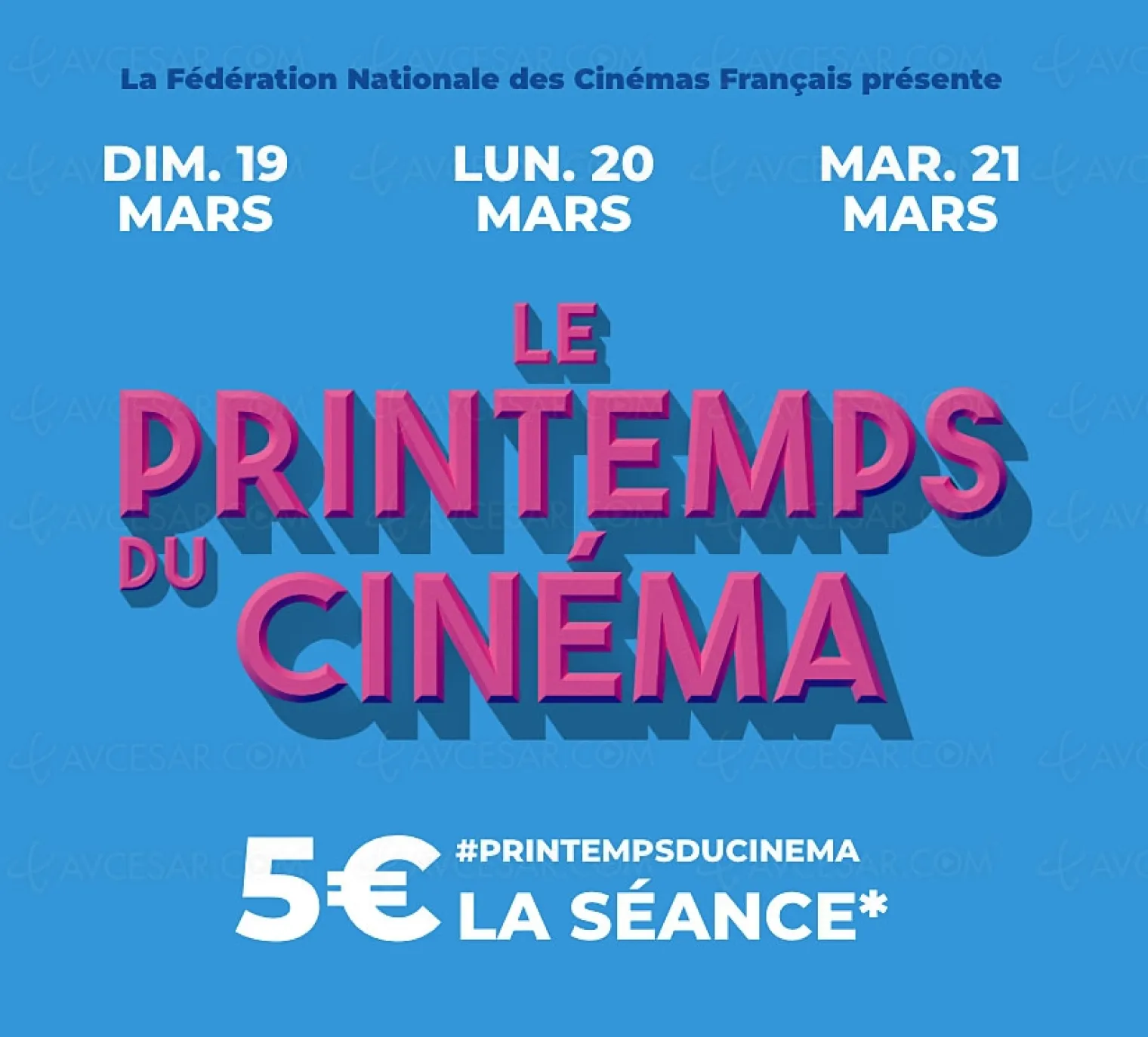 Sorte de Fête du Cinéma avant l’heure, cet événement est organisé par la Fédération nationale des cinémas français. Concrètement, pendant ces trois jours, les séances de cinéma seront facturées 5 € seulement (contre 4 € l’année dernière, l’inflation tout ça, toi‑même tu sais…), dans tous les cinémas de France et à tous les horaires. De quoi continuer à motiver une industrie, celle du 7e art, qui sort enfin la tête de l’eau après avoir particulièrement souffert de la crise sanitaire liée au Covid‑19. À vos agendas !