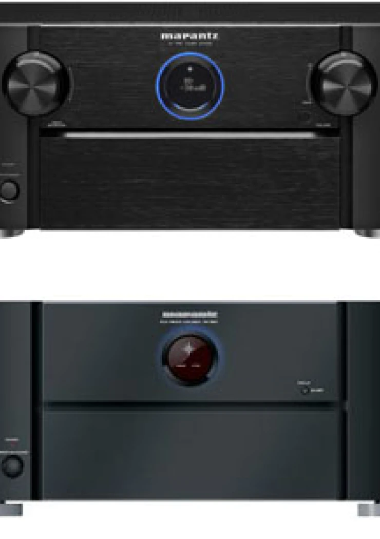 Doté d’une entrée XLR, l’amplificateur Marantz MM7055 délivre une puissance de 5 x 140 watts. De son côté, le préamplificateur Marantz AV7005 intègre les décodeurs Dolby TrueHD/DTS‑HD/ Dolby Pro Logic IIz, six entrées HDMI CEC 1.4 transparentes au Deep Color, au xvYCC, au 1 080p/24 et au signal 3D, deux sorties dont une dotée de la fonction ARC, la fonction audio UPnP (DLNA), les traitements Audyssey MultEQ, Audyssey Dynamic Volume et Audyssey Dynamic EQ, des composants audiophiles HDAM, un port USB Host en façade (avec gestion directe de l'iPod/iPhone) et un port M‑Xport pour le raccordement d’un module Bluetooth Marantz RX101 optionnel. À noter, la présence d’une entrée Phono MM et, bien sûr, une sortie préamplificateur 7.2 XLR.