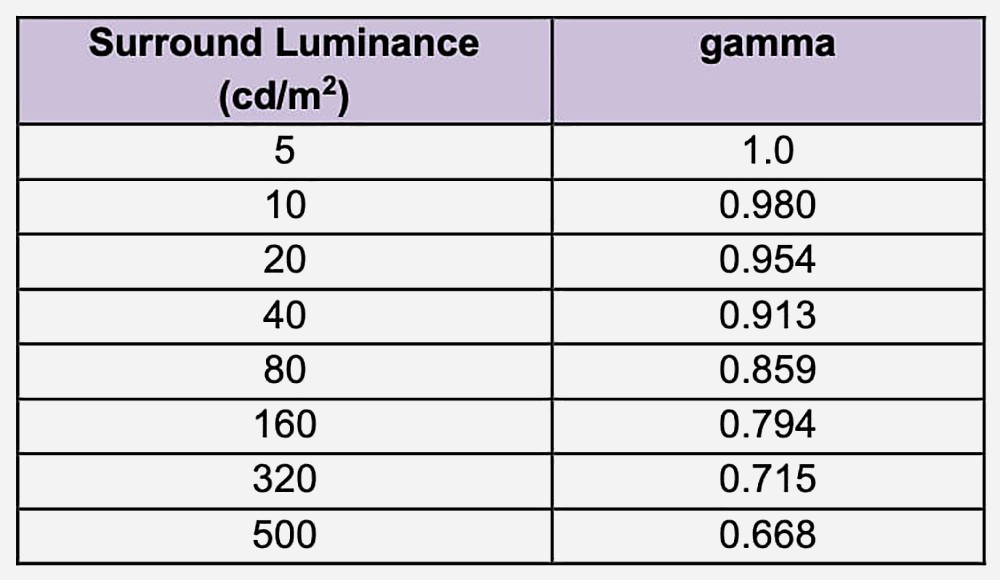 L’UHD Alliance vient de lancer la version 1.1 du mode Filmmaker, autorisant notamment une adaptation de l'image en fonction de la luminosité de votre pièce, tout simplement en exploitant le capteur de luminosité de votre téléviseur. À l’origine, le mode Filmmaker a été optimisé en fonction d’un standard de visionnage à 5 nits (salles de cinéma), lequel reste inchangé quelle que soit la luminosité de votre pièce de visionnage, plein jour ou obscurité. Reconnaissant que certains contenus, films ou séries, puissent paraître trop sombres dans un environnement de visionnage lumineux, l’UHD Alliance propose dans cette v1.1 une fonction de compensation de luminosité à travers un gamma dynamique (cf. ci‑dessous les valeurs de gamme adoptées selon la luminosité ambiante). Les couleurs et le contraste du film changent ainsi en fonction de la lumière de votre pièce, analysée par le capteur du téléviseur, imitant le fonctionnement d’adaptabilité de l’œil humain.