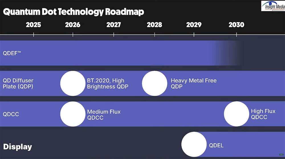 Selon Jeff Yurek, responsable marketing de Nanosys interrogé par la chaîne YouTube Insight Media, 2029 constitue une fenêtre réaliste pour la commercialisation des premiers produits du genre, même si le type de panneau concerné n’est pas encore arrêté. Les premiers modèles viseront des niveaux de luminosité Medium Flux, loin des applications AR extrêmes, mais suffisants pour une première génération de téléviseurs ou moniteurs NanoLED.