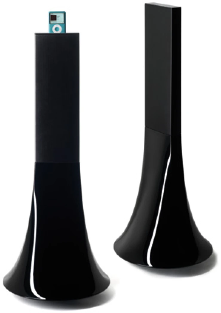 Compatibles Wi-Fi et Bluetooth, il est possible de diffuser sur ces enceintes (2 x 50 W) la musique en provenance d’un PC, d’un disque dur Nas ou encore d’un téléphone portable. Les compatibilités MP3 et WMA sont assurées. Et grâce à une station d’accueil dissimulée au sommet de l’une des enceintes, toutes les générations de baladeurs iPod sont acceptées, en plus de l'iPhone. À noter, elles communiquent également entre elles sans fil (Bluetooth). De plus, elles disposent d’une entrée stéréo RCA permettant la connexion de n’importe source analogique.