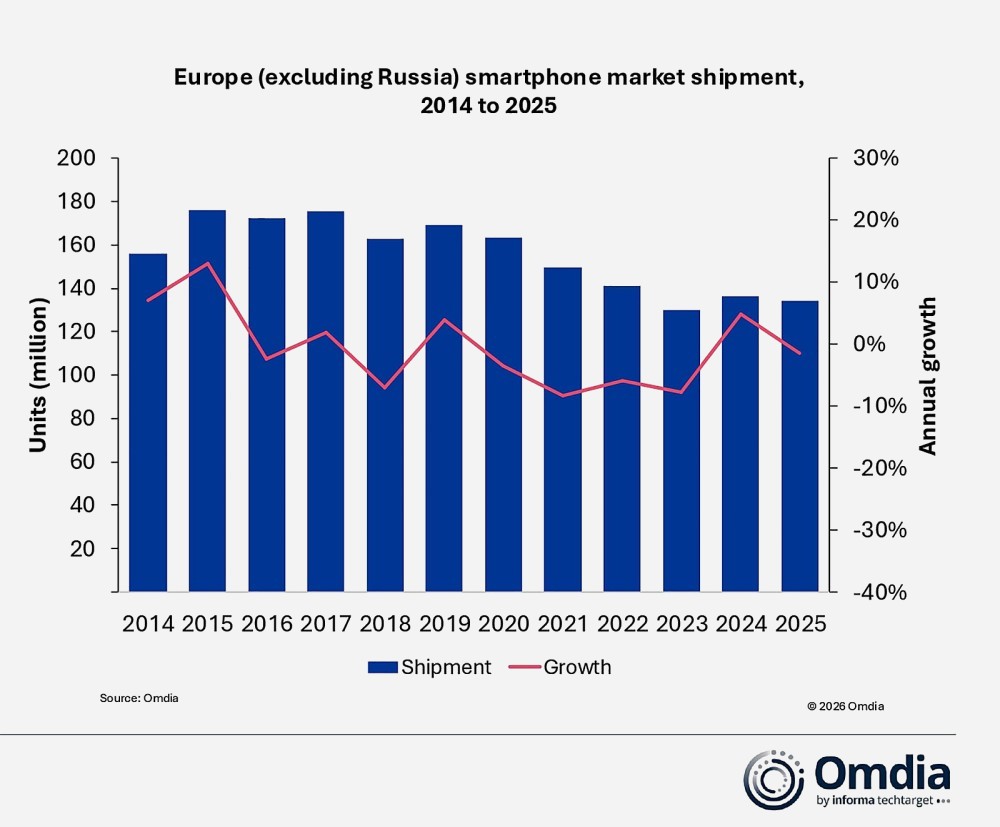 Ainsi, l’année dernière, Apple a distribué 36,9 millions d’iPhone en Europe, soit 6% de mieux qu’en 2024, pour une part de marché record de 27%. C’est ce que révèlent les derniers chiffres du cabinet Omdia, qui précise que l’ensemble du marché a connu une baisse de 1% en Europe entre 2024 et 2025, à cause notamment des nouvelles régulations européennes autour des éco‑obligations et des ports USB‑C obligatoires.