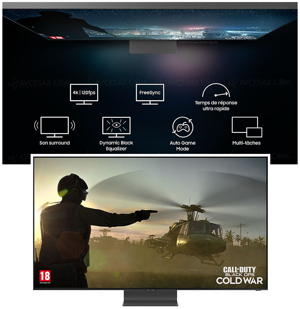 La rédaction d’AVCesar.com a donc souhaité mettre sur pied un rapide guide explicatif. Et porter ensuite à votre attention la meilleure offre du marché pour changer son téléviseur et profiter au mieux des dernières consoles ou cartes graphiques et de leurs fonctionnalités Image et Son. En plus de la nécessité de choisir un TV doté d’un ou plusieurs connecteurs HDMI 2.1, notre choix s’est porté sur les TV QLED Samsung (à partir de la série Q70T et au‑dessus jusqu'aux Q950T). À cela, deux raisons simples et indépendantes de la qualité de l’image affichée. LED ou Oled, un jeu sera en effet superbe sur l’une ou l’autre des technologies avec les avantages et inconvénients associés : densité des noirs supérieure sur l’Oled (mais les TV LCD ont réalisé d’énormes progrès ces deux dernières années), pic lumineux sensiblement plus élevé sur les TV embarquant la technologie Quantum Dots et des couleurs toujours chatoyantes même avec une luminosité élevée alors qu’elles s’affadissent sur les TV Oled.