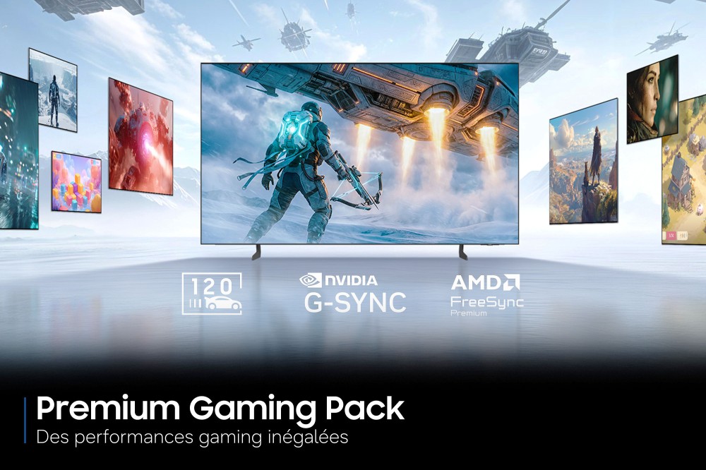 La compatibilité VRR et quatre entrées HDMI 2.1 capables d’accepter un signal 4K 120 Hz sont de mise, ce qui place la série parmi les bons élèves pour le jeu vidéo. Le mode AI Motion Enhancer reste de la partie pour lisser les mouvements rapides sans trop d’artefacts, tandis que le Mode Jeu Auto avec IA adapte automatiquement les réglages en fonction du type de contenu ludique. On retrouve également le paramètre AI Football Mode, qui détecte les retransmissions de matches pour optimiser la couleur de la pelouse et l’ambiance sonore du stade.