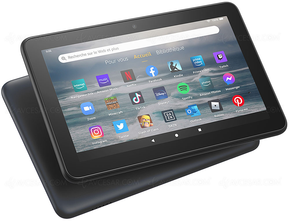 Équipée d’un écran tactile 7'' (17,78 cm), la tablette Amazon Fire 7 dispose aussi de caméras avant et arrière 2 Mpxls, capables d’enregistrement vidéo HD 720p.