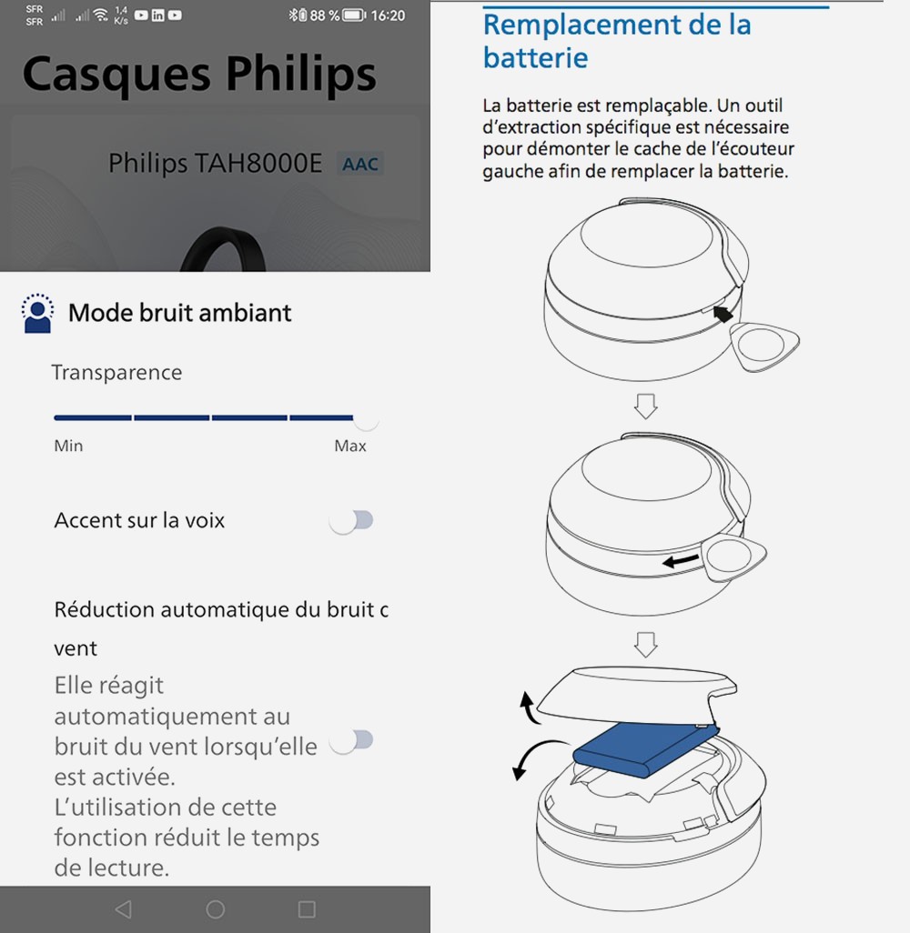 Philips TAH8000E : batterie remplaçable