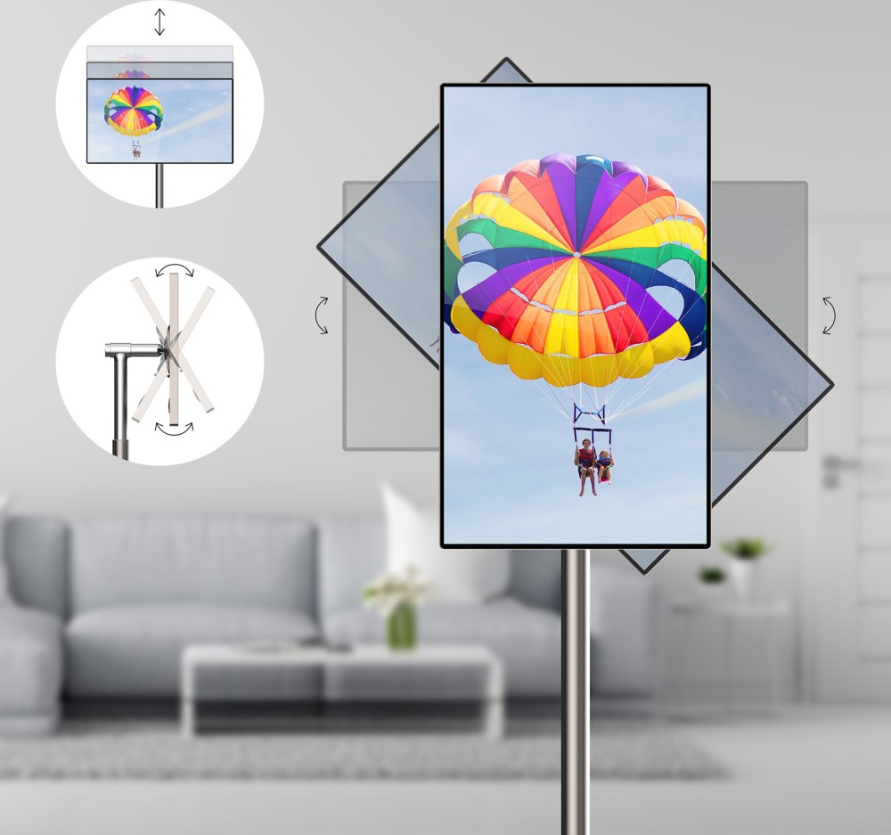 Un équipement lui permettant d’être adapté à nombre d’activités professionnelles, visioconférences entre autres, où il pourra se déplacer d’un bureau à un autre, ou faire le tour d’une salle de réunion sans qu’il soit nécessaire d’interrompre les échanges. Plus encore en usage domestique, via ses fonctionnalités tactile et orientable afin de pouvoir afficher les documents en mode Paysage ou Portrait (cf. photo ci‑dessous), le Go Plus Pro prouve sa pertinence. Il se substitue en effet à une tablette pour accéder directement au Web ou afficher des fichiers archivés sur un disque dur nomade, par exemple, ou même un serveur Nas. Mais surtout, la possibilité d’afficher de concert à l’écran (écran partagé ou multifenêtrage) sa série préférée et ses réseaux sociaux favoris, ou encore un site internet, ravit tous les utilisateurs, du plus jeune au moins jeune. Plus besoin de jongler entre l’écran du TV et de son/sa smartphone/tablette, tout est disponible au même endroit. Qui plus est, son design élégant associé à la présence d’un caisson de basse intégré offrent un confort d’utilisation optimal.
