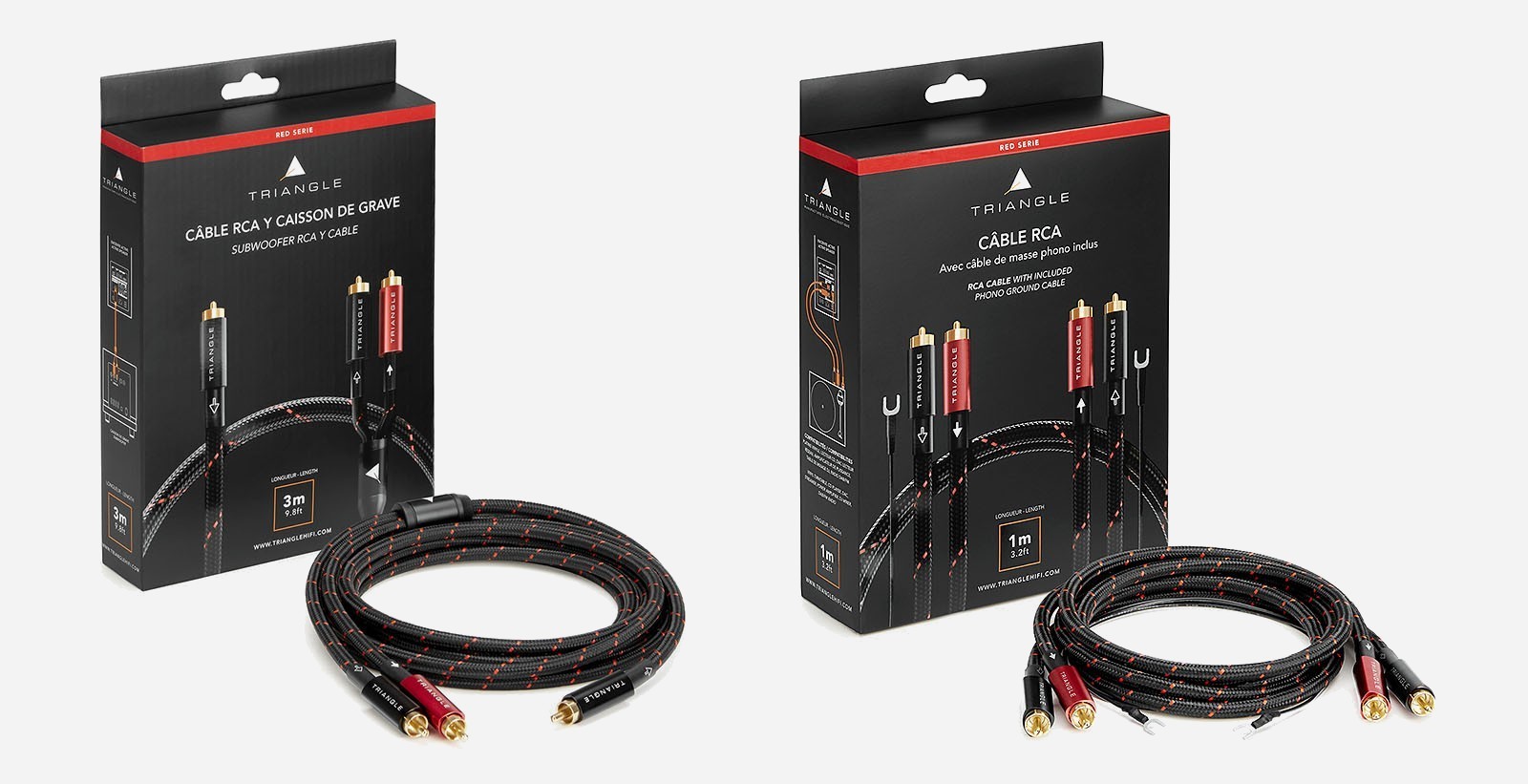 Après les câbles haut‑parleurs prémontés avec connecteurs banane, les gammes Red et Black signées Triangle s’étoffent avec des câbles de modulation RCA. Des modèles permettant de connecter par exemple un lecteur CD audio ou une platine vinyle sur votre amplificateur ou enceinte amplifiée.