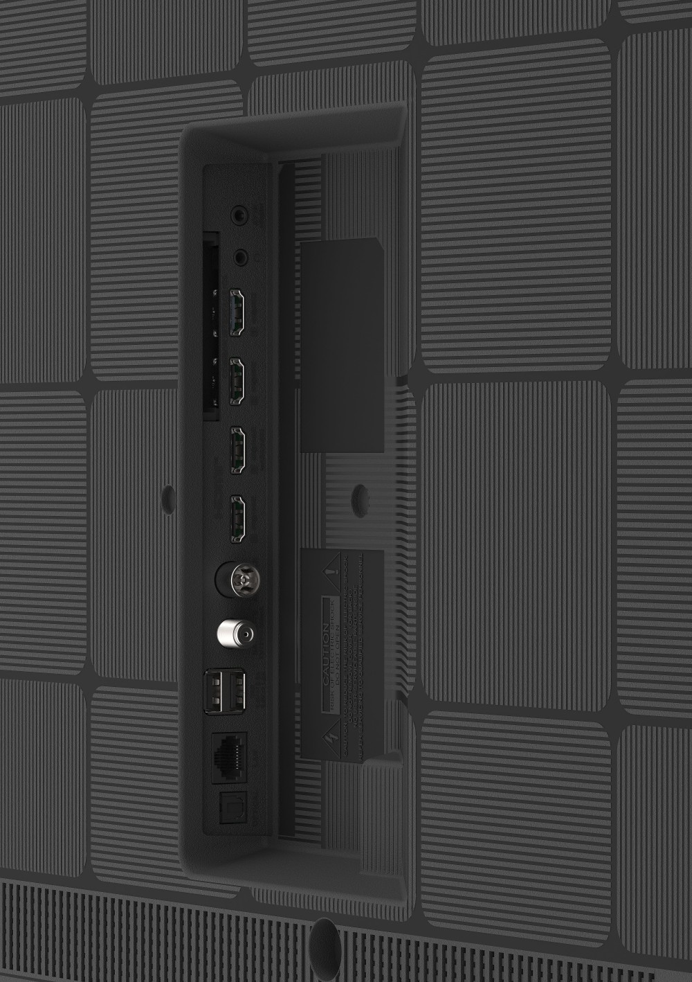 • Entrées : 2 entrées HDMI 2.1, 2 entrées HDMI 2.0, 2 ports USB Host dont 1 3.0, 1 stéréo/AV mini‑Jack 3,5 mm, 1 sortie optique, 1 port CI+ et 1 port Ethernet