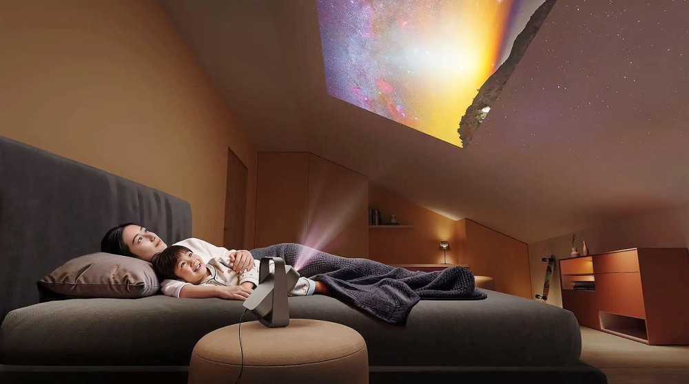 Avec l'Elfin Flip 4K, évolution majeure de son prédécesseur 1 080p Elfin Flip, Xgimi entend proposer un projecteur Ultra HD 4K réellement polyvalent, capable de s’intégrer dans n’importe quel intérieur sans installation complexe. Son format tablette, son poids contenu d'1,55 kg et son gimbal rotatif à 150° permettent une projection murale ou plafond sans trépied, tandis que son zoom optique 0,98‑1,3:1 offre un ajustement de l’image sans perte de définition. Une distance de 2,17 mètres suffit pour obtenir une diagonale de 100 pouces (taille maximum possible de 120"), autorisant une très grande image accessible même dans les petits espaces.