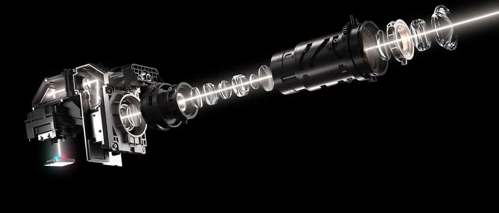 Le projecteur adopte donc une source lumineuse laser RGB de dernière génération signée Nichia (le plus grand fabricant japonais de LED et laser, inventeur de la LED bleue), offrant 1 600 lumens, un contraste de 20 000:1 et une couverture colorimétrique très large, 99 % du DCI‑P3 (et 110% de volume colorimétrique relatif). On remarque aussi une matrice DLP 0,39" (environ 1 cm). La valeur du DeltaE, < 1, assure un rendu fidèle, avec des couleurs saturées et une lisibilité préservée même en plein jour. L’objectif est de proposer une expérience cinéma sans contrainte d’obscurité. La compatibilité HDR10 est de mise.
