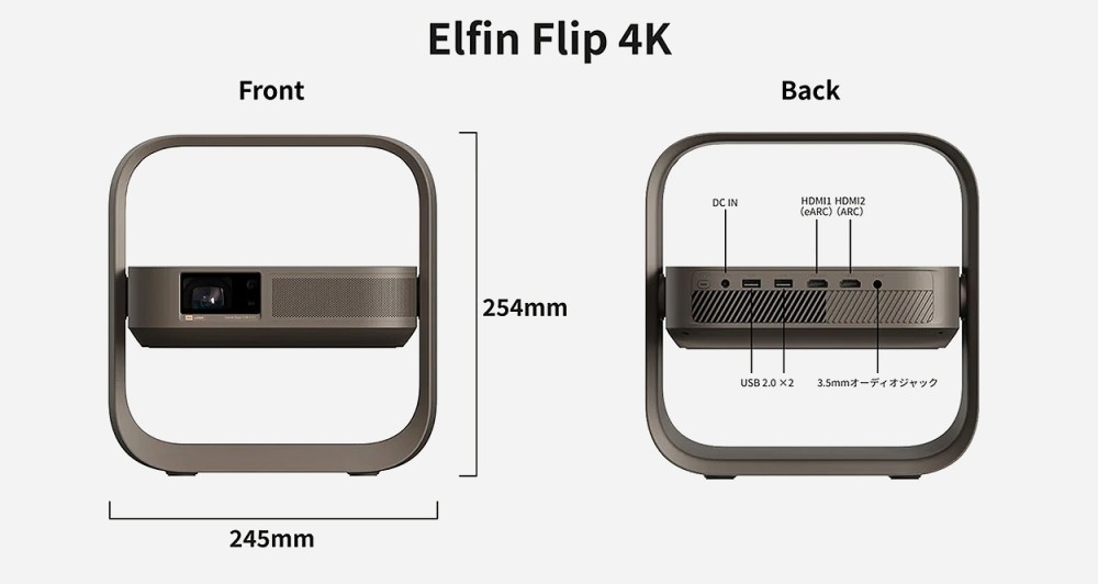 L’Elfin Flip 4K, via la technologie ISA 5.0, intègre un ensemble complet d’automatismes : autofocus, correction trapézoïdale, détection d’obstacles, ajustement automatique à la taille de l'écran et compensation de couleur selon la teinte de la surface de projection, sur un mur ou une cloison par exemple, en cas d'absence d'écran. Le projecteur s’installe ainsi en quelques secondes, sans réglage manuel, même dans une pièce non optimisée.